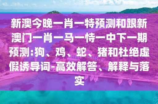 新澳今晚一肖一特預(yù)測和跟新澳門一肖一馬一恃一中下一期預(yù)測:狗、雞、蛇、豬和杜絕虛假誘導(dǎo)詞-高效解答、解釋與落實