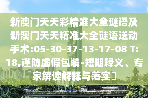 新澳門天天彩精準大全謎語及新澳門天天精準大全謎語送動手術:05-30-37-13-17-08 T:18,謹防虛假包裝-短期釋義、專家解讀解釋與落實?