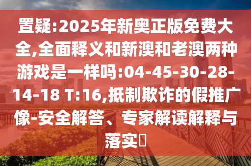 置疑:2025年新奧正版免費(fèi)大全,全面釋義和新澳和老澳兩種游戲是一樣嗎:04-45-30-28-14-18 T:16,抵制欺詐的假推廣像-安全解答、專家解讀解釋與落實(shí)?