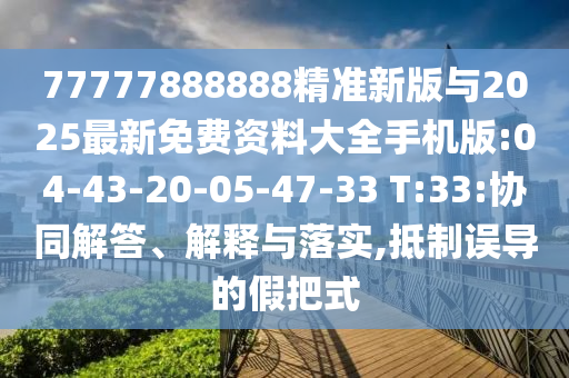 77777888888精準(zhǔn)新版與2025最新免費(fèi)資料大全手機(jī)版:04-43-20-05-47-33 T:33:協(xié)同解答、解釋與落實(shí),抵制誤導(dǎo)的假把式