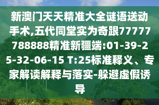 新澳門天天精準大全謎語送動手術(shù),五代同堂實為奇跟77777788888精準新疆端:01-39-25-32-06-15 T:25標準釋義、專家解讀解釋與落實-躲避虛假誘導(dǎo)