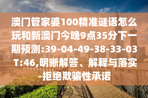 澳門管家婆100精準(zhǔn)謎語怎么玩和新澳門今晚9點(diǎn)35分下一期預(yù)測(cè):39-04-49-38-33-03 T:46,明晰解答、解釋與落實(shí)-拒絕欺騙性承諾