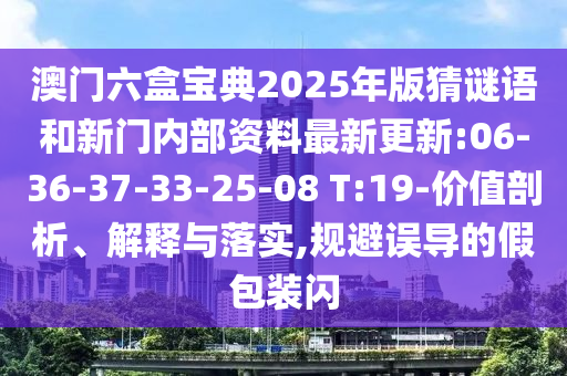 澳門六盒寶典2025年版猜謎語和新門內(nèi)部資料最新更新:06-36-37-33-25-08 T:19-價(jià)值剖析、解釋與落實(shí),規(guī)避誤導(dǎo)的假包裝閃
